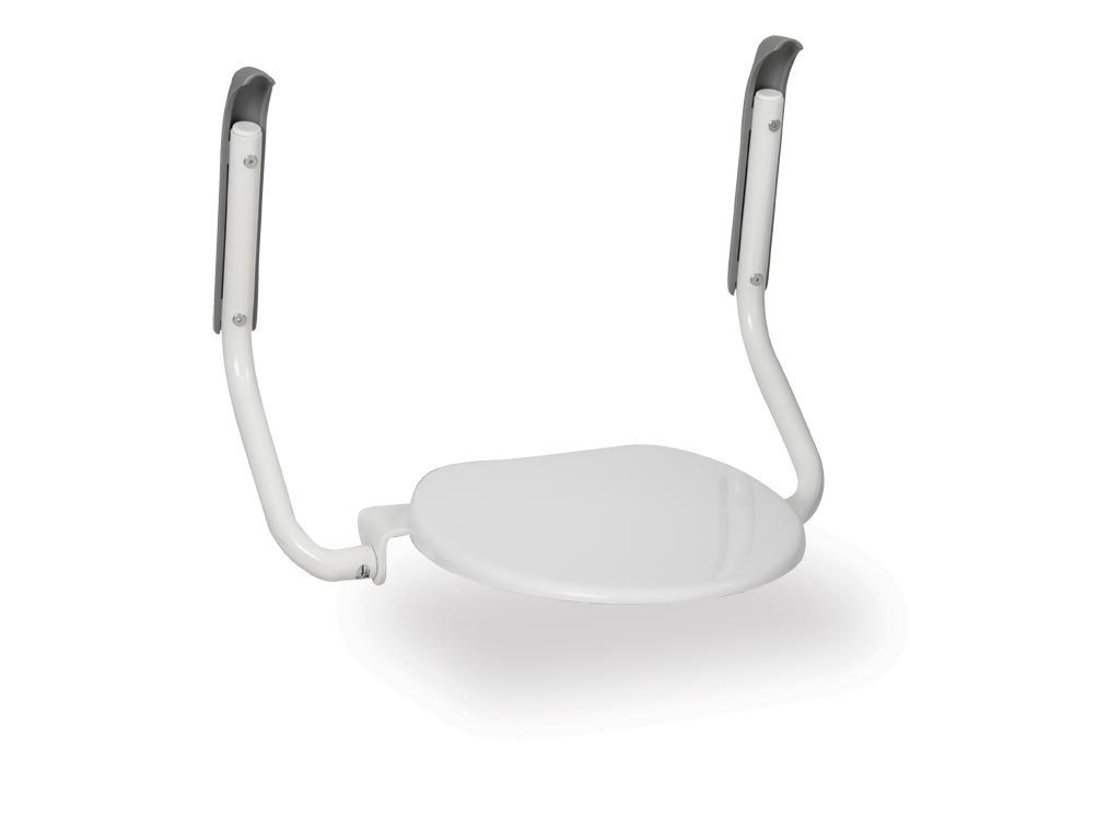 Monteres direkte på eksisterende toalett for å gi ekstra støtte og trygghet ved nedsettelse og oppreisning. Armlenene kan felles opp for lettere sideforflytning.