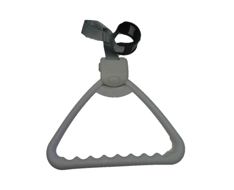 Triangel håndtak standard er et solid og justerbart grep som festes i en sengebom. Håndtaket gir brukeren et komfortabelt og sikkert støttepunkt for å trekke seg opp, skifte stilling eller reise seg fra sengen. Den trekantede utformingen med gummiliner sikrer godt grep og hindrer glidning.